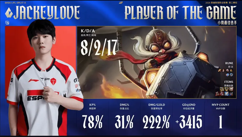 04月 09 2026 0 亚博-JackeyLove首局发挥出色,斩获TES对阵WE首局MVP xiaoqiao 2026-04-09 意甲 23 虎扑04月08日讯 JackeyLove首局发挥出色,斩获TES对阵WE首局MVP来源:虎扑电竞 虎扑04月08日讯 JackeyLove首局发挥出色,斩获TES对阵WE首局MVP来源:虎扑电竞